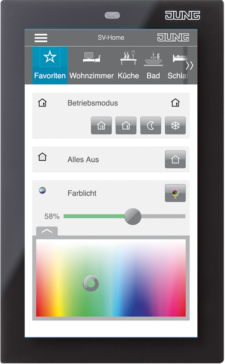 Система JUNG KNX: удобная и перспективная. Удобно управляйте функциями с помощью смартфона и голосового управления, автоматизируйте повседневные процессы и следите за потреблением энергии. Включайте и приглушайте свет, поднимайте и опускайте жалюзи, регулируйте температуру в помещении и интегрируйте интеллектуальные продукты от многих поставщиков: с помощью системы "Умный дом" JUNG HOME вы просто облагородите свой дом.